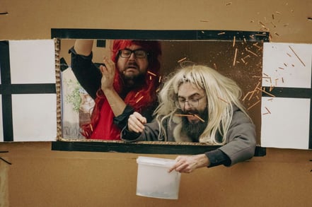 Camille et Charles s’emparent des grands classiques et les réinventent avec l’énergie débordante du théâtre de foire ! Cendrillon et Le Petit Chaperon Rouge n’ont jamais été aussi explosifs : du jeu burlesque, de l’improvisation, des fumigènes et une bonne dose d’outrance pour faire vibrer la place publique. Inspiré du théâtre populaire des foires parisiennes, leur spectacle est proche du public, généreux et exubérant. Deux comédiens, un échafaudage customisé et toute la magie du conte se réinvente sous vos yeux ! Ici, on crie, on gesticule, on exagère : les histoires s’enflamment et prennent vie dans un tourbillon festif et déjanté. Une réécriture engagée et jubilatoire, où les héroïnes reprennent leur place et s’émancipent sous les regards ébahis. Parce que Cendrillon et le Petit Chaperon Rouge n’attendent plus qu’on les sauve : elles écrivent leur propre destin !